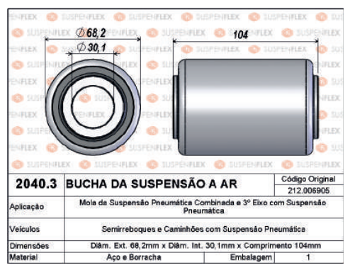 A Bucha da Suspensão a Ar 2040.3 é um componente essencial para sistemas pneumáticos de veículos pesados, garantindo alta eficiência na absorção de impactos, estabilidade e maior vida útil da suspensão. Produzida com aço e borracha de alta resistência, oferece desempenho confiável mesmo em condições severas de uso.