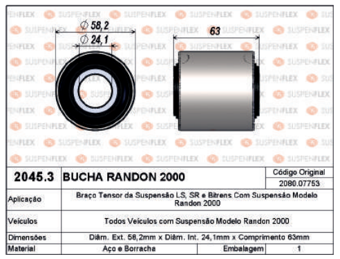 A Bucha Randon 2000 é desenvolvida para aplicações pesadas em sistemas de suspensão, oferecendo alta resistência, absorção de impactos e excelente durabilidade. Fabricada com aço e borracha de alta qualidade, garante desempenho confiável mesmo em condições severas de uso.